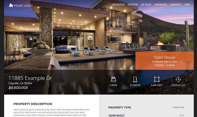 Showcase your listing with a clean, modern design while placing a strong emphasis on photography.